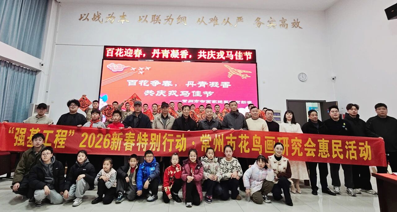 | 1月29日下午,常州市花鸟画研究会新春惠民活动走进常州某部,为驻地官兵送上佳节祝福。