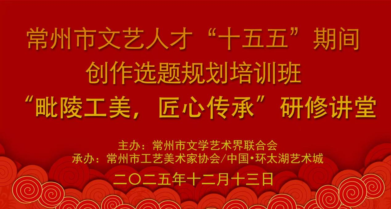 2025年12月13日,由常州市文学艺术界联合会指导、常州市工艺美术家协会主办的常州市文艺人才“十五五”期间创作选题规划培训班暨“毗陵工美 匠心传承”研修讲堂,在中国环太湖艺术城本π空间正式启动。本次活动旨在进一步提升常州市工艺美术从业者的创作水平,拓宽艺术视野,激发创新思维,为其在未来五年内的创作方向提供学术指引与灵感支持。
