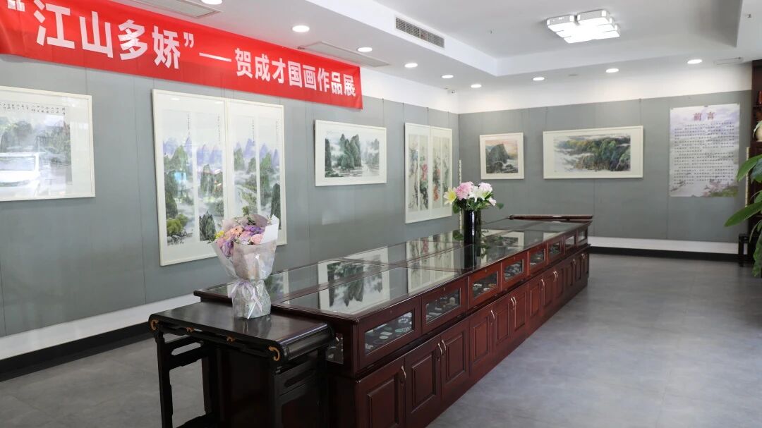 为迎接中华人民共和国成立76周年,以国画艺术的方式铭记历史、凝聚共识、坚定文化自信,9月12日,由钟楼区政协书画协会、钟楼区文联共同主办的“江山多娇”贺成才国画展在凤宝斋美术馆开幕。常州市文联党组书记、主席沈玉俊,钟楼区政协副主席徐亦波,钟楼区委宣传部常务副部长吴怀君,北港街道党工委副书记、政协工委主任范赟出席活动。