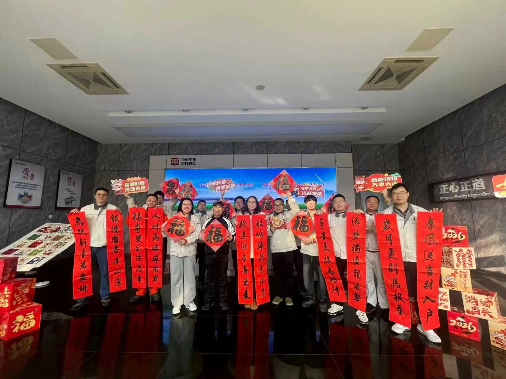 在《常州晚报》刊发马年春联的同时,线下活动也同步推进,会员邹稳根老师赴中车戚研所,为中国高铁和风电的王牌产品设计制造者们创作并书写春联。市民协楹联委员会孙和章副主任也在春节期间赴钟楼区茶花社区及秋白书院,为小学生开办楹联讲座。