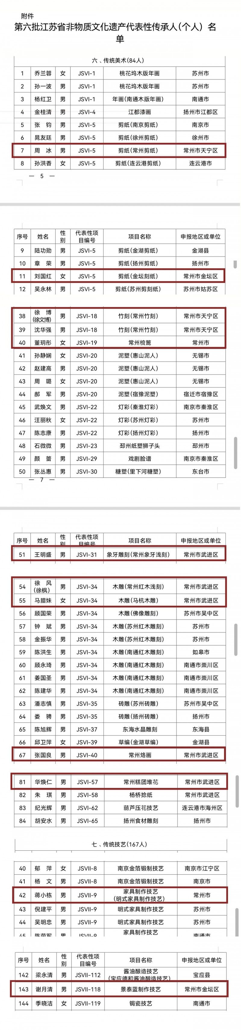 近日,江苏省文化和旅游厅正式公布第六批江苏省非物质文化遗产代表性传承人名单,经推荐申报、评审审议、社会公示等程序,全省共377名个人、5个团体成功入选。常州市工艺美术家协会12人入选,涵盖竹刻、象牙浅刻、烙画、梳篦、明式家具等多个传统工艺门类。