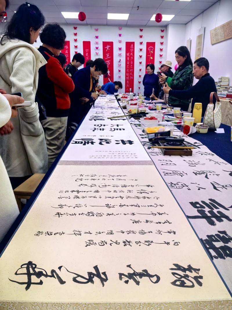 3月1日下午,在三八国际妇女节来临之际,常州市书法家协会举办“春风十里不如你”女会员艺术沙龙,全市女书法家齐聚一堂、以墨会友,在翰墨书香中尽显巾帼书者风采。活动现场墨香氤氲、暖意融融。现场特邀嘉宾唐东进围绕国展创作经验展开分享,从选题立意、章法布局、笔墨技巧到形式设计,结合实践经历细致讲解,为女书法家们破解创作瓶颈、明晰提升路径,助力拓宽艺术视野、汲取创作养分。随后,大家携手共书书法长卷,楷书端庄、行书灵动、隶书古朴,一撇一捺间尽显扎实功底与艺术才情,墨韵流转中凝聚起同心雅趣。此次沙龙融合专业创作交流、传统笔墨实践与休闲生活美学,既展现了常州女书法家的才情风骨与艺术追求,也丰富了协会女会员的文化生活,进一步增强了协会的凝聚力与向心力。值此三八国际妇女节来临之际,市文联祝愿全体女书法家节日快乐、春风得意,墨香常伴、芳华自在。
